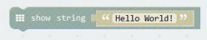 When programmers are learning a new language, we tend to write a short line program that prints the message “Hello world!”. Drag the blocks shown here one at a time and then read below about what each one does.